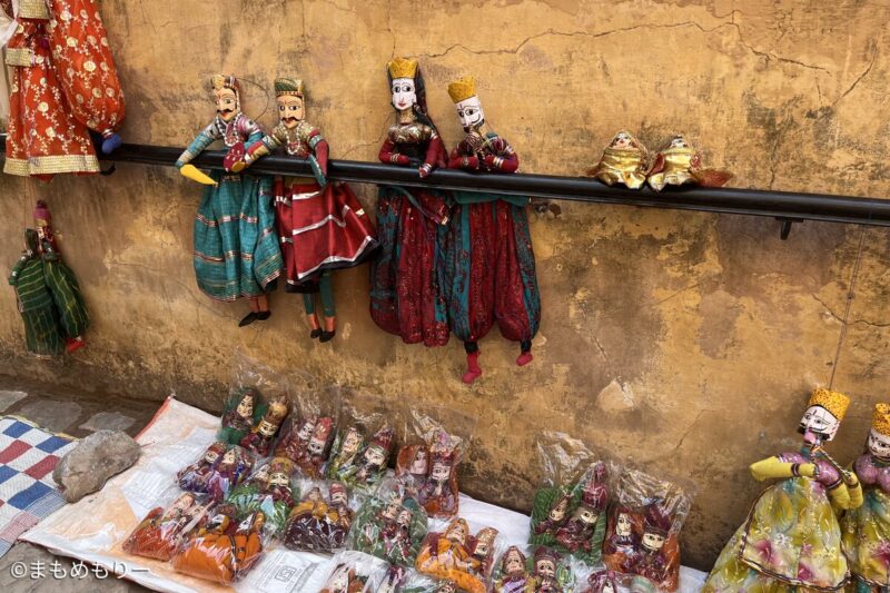 城内や坂道には、ラジャスタン伝統の人形やアクセサリーなどを売る物売りが多数います。