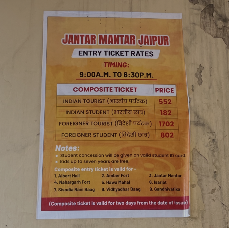 コンポジットチケットは複数スポットを回るならお得ですが、ジャイプールでは、2 Amber Fort、3 Jantar Mantar、5 Hawa Mahal+チケットに含まれていないシティパレスを回ると1日が終わります。